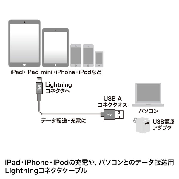 【商品説明】●Apple社 MFI認証(Made For iPhone/iPod/iPad)を取得したライトニングケーブルです。