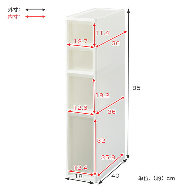 ●外寸幅が18cmで、すきまにぴったりと収まり小物整理に便利なサイズです。